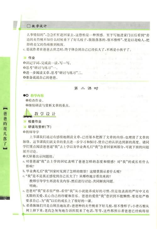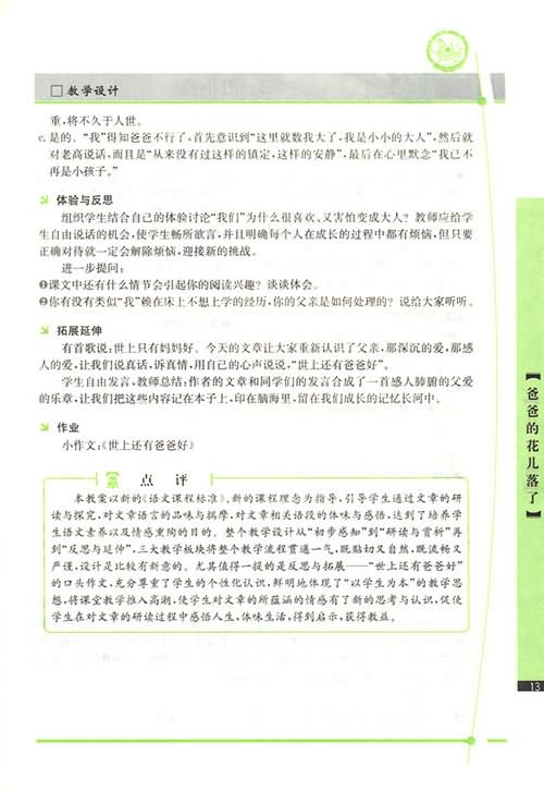 更多本课教学资料 返回爸爸的花儿落了 报错