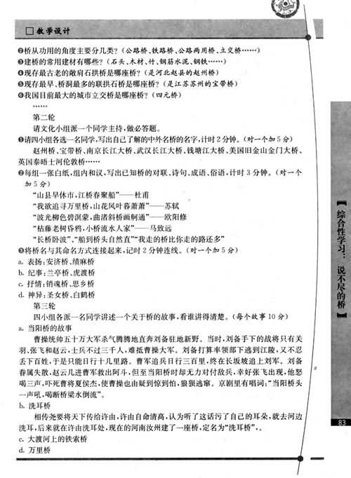 更多本课教学资料 返回综合性学习·口语交际 说不尽的桥 报错