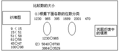 师说:我们比较海龟的年龄,其实就是在比较数的大小.(板书课题:比较数的大小)我们已经学过比较百以内的数的大小,先看数的位数,位数多的数就大,如果位数相同,先看十位上的数,十位上大的数,这个数就大,如果十位上的数也相同,再比个位上的数,个位上大的数,这个数就大,如果个位上的数也相同,说明这两个数同样大.