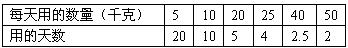 一个单位食堂每天用大米的数量、用的天数和大米的总量如下表.
